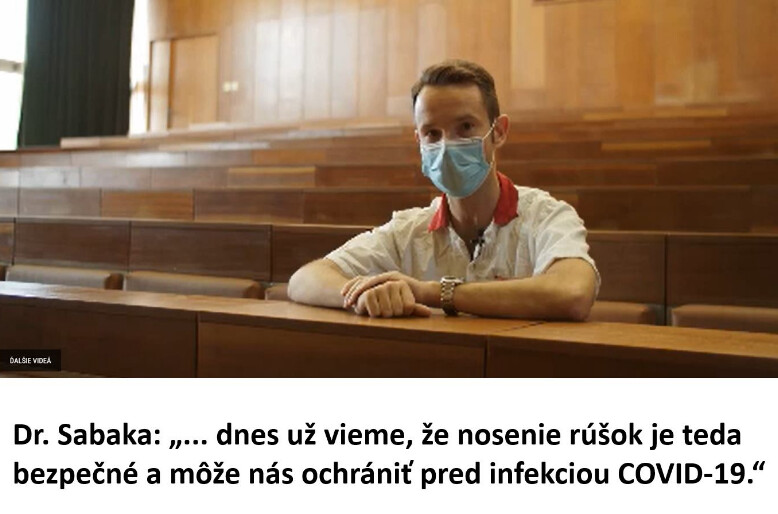 MUDr. Sabaka vo videu tvrdí, že dnes už vieme, že nosenie rúšok je teda bezpečné a môže nás ochrániť pred infekciou COVID-19. S prvou časťou vety by sa dalo súhlasiť v prípade, že sa jedná o zdravé osoby, ale nie o osoby s pokročilými chorobami kardiorespiračného systému, resp. iným chorobami spojenými so závažnou respiračnou insuficienciou.
