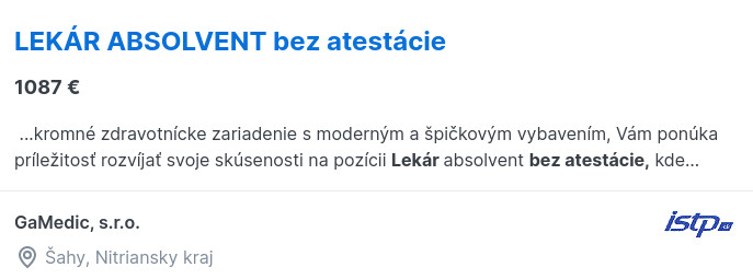 Ak chcete pracovať v nemocnici ako lekár, plat okolo 1100 EUR v hrubom. Potrebujete samozrejme medicínske vzdelanie.
