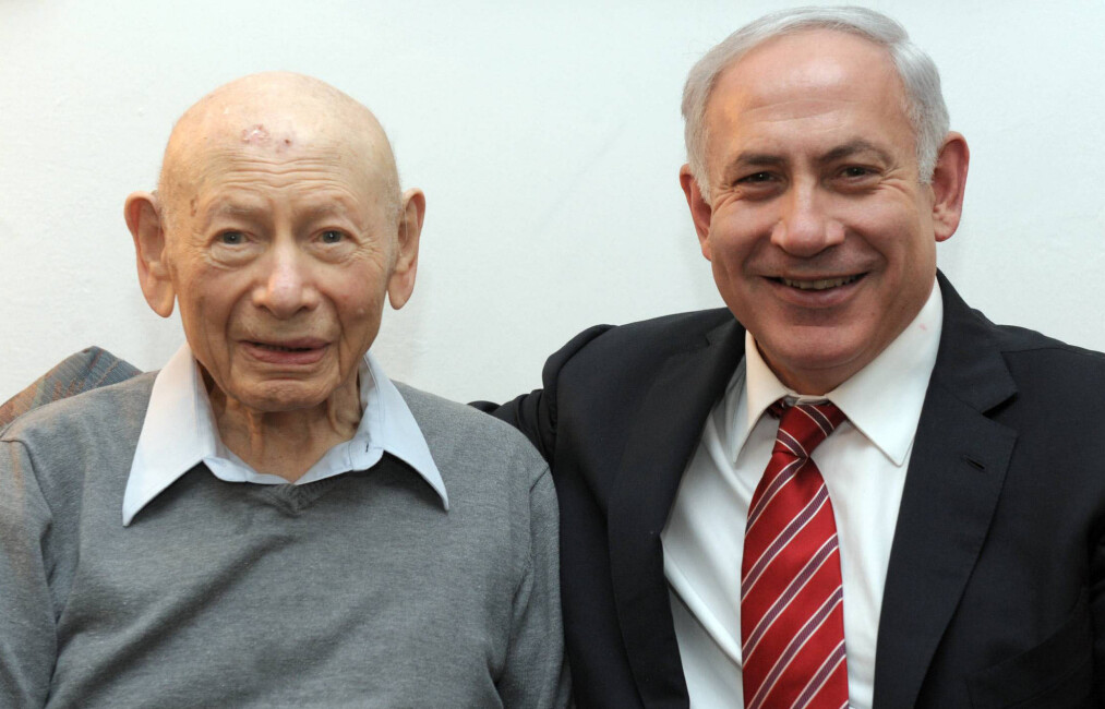 Vľavo Benzion Netanyahu, vpravo jeho syn, súčasny premiér Izraela Benjamin Netanyahu