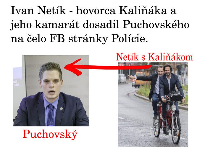 Na fotke vidíte Netíka s Kaliňákom. Netík robil Kaliňákovi hovorcu a je jeho veľmi dobrý kamarát. Práve Netík pracoval v Novom Čase a vybral Puchovského za správcu stránky polície SR. Čím ho zaujal je otázne, možno orientáciou…