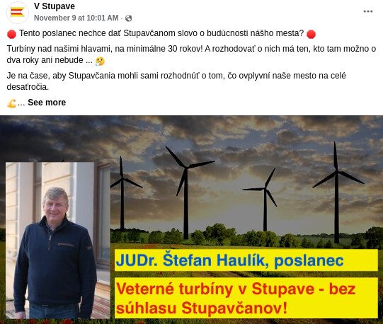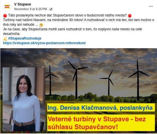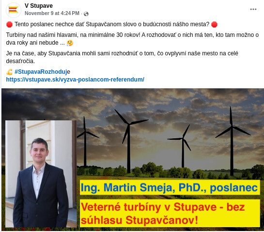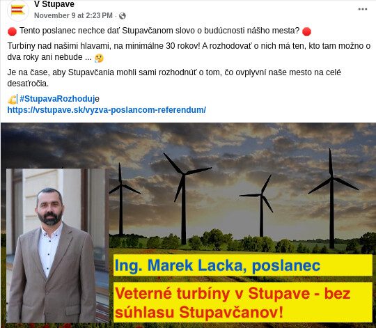 Títo poslanci sa hrajú na demokraciu len pred voľbami. Odmietajú dať občanom Stupavy možnosť rozhodnúť sa, či chcú alebo nechcú veterné elektrárne.