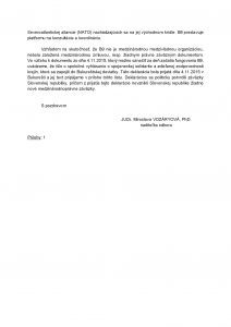 Informácie sme sa obrátili na Ministerstvo Obrany ktoré potvrdilo nasledovné : jedná sa o deklaráciu ktorá nezävazuje Slovensku republiku k novým plneniam , ani nemá charakter vojenského zoskupenia , ale politického ,