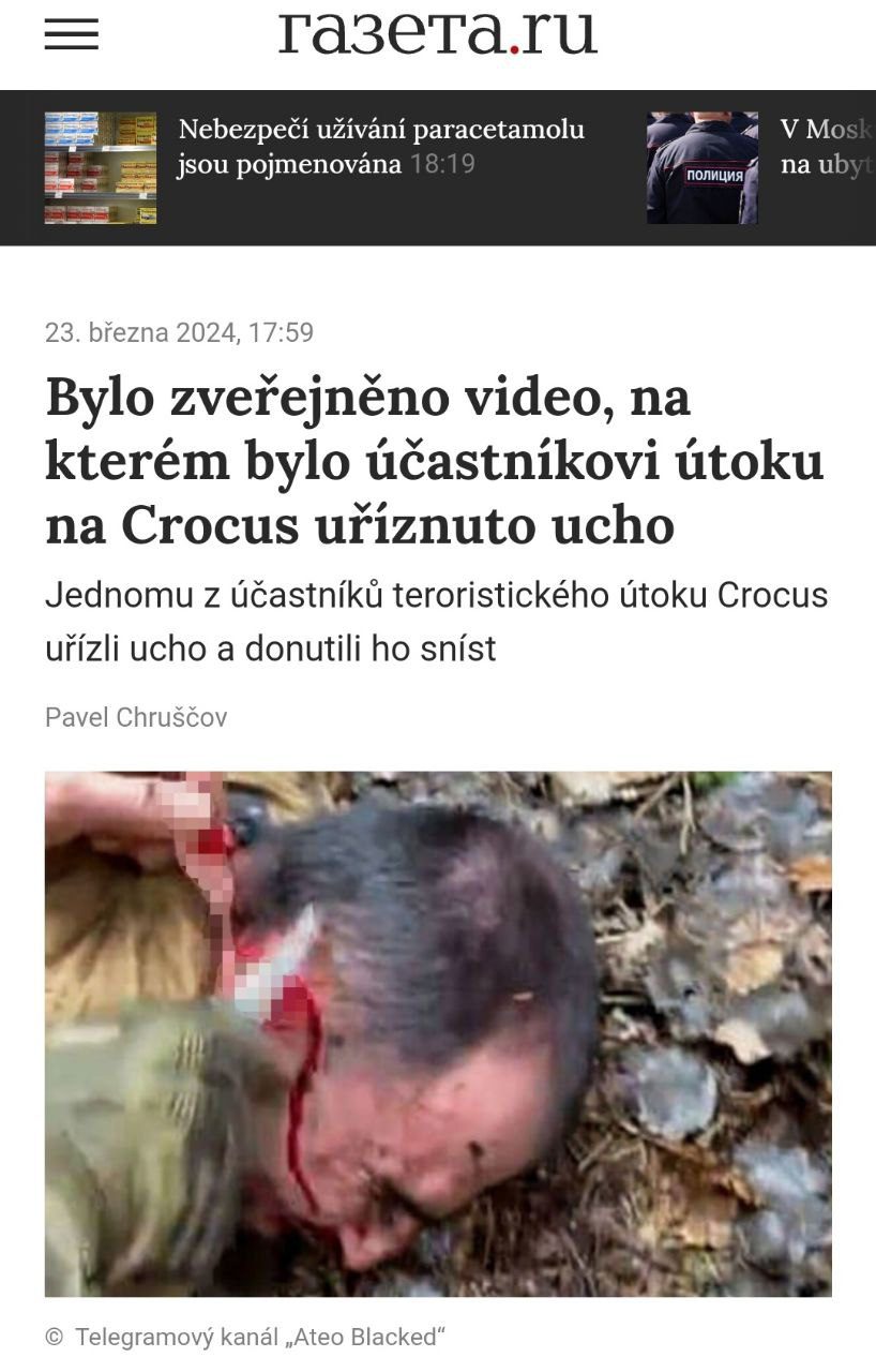 Ruský zpravodajský web Gazeta napsal: Bezpečnostní složky uřízly ucho jednomu z účastníků teroristického útoku nedaleko Moskvy. 👂🏻