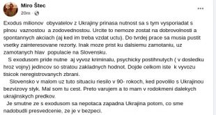 Read More »Vedec Štec varuje pred príchodom kriminality, zbraní, drog z Ukrajiny