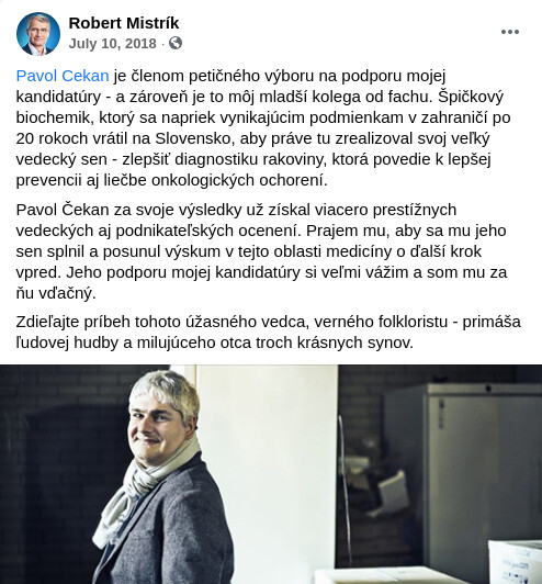 O rok neskôr Čekan robil kampaň kandidátovi za Progresívne Slovensko.