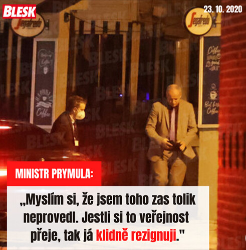 Českého ministra zdravotníctva Prymulu, ktorého rodina je napojená na farma firmy nachytali ako vychádza z reštaurácie bez rúška. Pritom na verejnosti zaviedol najtvrdšie opatrenia a nutnosť nosiť rúšku aj vo vonkajšom priestore. Vyjadril sa, že to nevidí ako veľké pochybenie, ale ak si to verejnosť bude želať tak rezignuje.