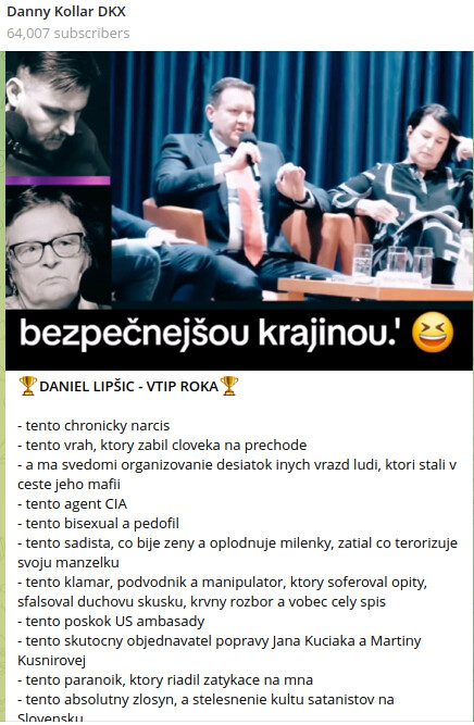 Pýtal som sa na pozíciu a plat Daniela Lipšica. Ten by mal robiť na generálnej prokuratúre, kde ho presunuli smeráci po zmene budovy špeciálnej prokuratúry. Práve tému Lipšica a Čurilovcov využívali pred voľbami, aby hecovali dav a šírili nenávisť v spolupráci s dvorným šašom Dannym Kollárom.