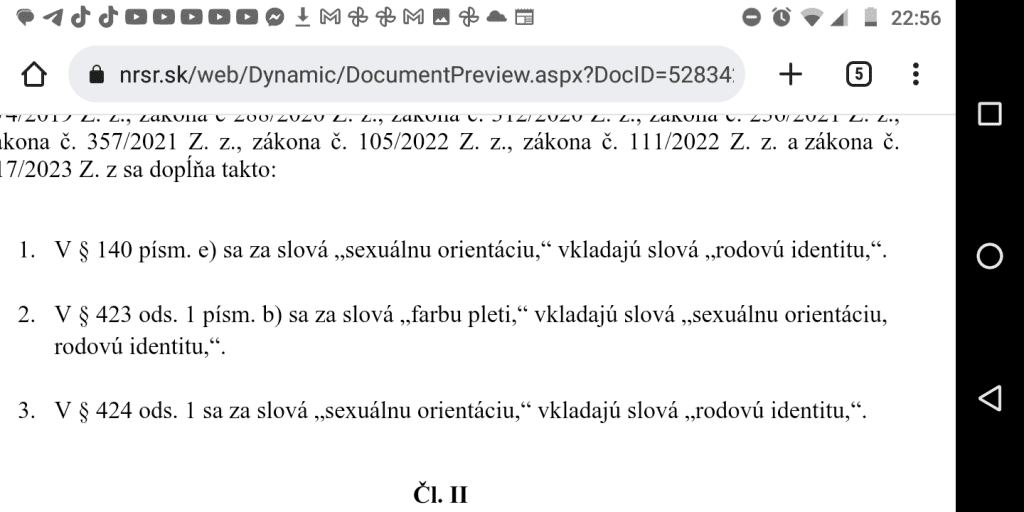 V NRSR je predložená novela trestného zákona, kde sa medzi priťažujúce okolnosti dopĺňa rodová identita a do trestného činu hanobenia národa a rasy pribúda hanobenie rodovej identity. Takýto zvrátený zákon nesmie prejsť, poslanci sú samozrejme ticho a pred voľbami im to spočítame, ak zákon prejde!