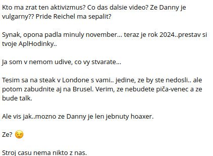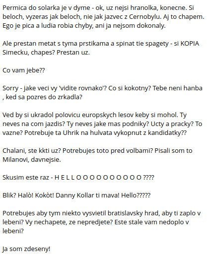Daniel Bombič po pár hodinách tento príspevok vymazal. Buď vytriezvel trošku, alebo…