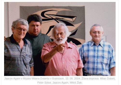 V priebehu roku 2004 prišlo aj k zblíženiu medzi mnou a prezidentom Nadácie Európska kultúrna spoločnosť Petrom Sokolom. Po stretnutí s prezidentom štátu Izrael J. E. Moše Kacavom na pôde Múzea Milana Dobeša v Bratislave ma Peter Sokol požiadal, aby som pozval prostredníctvom J. E. Kacava vystavovať do Múzea Milana Dobeša, zameraného výlučne na prezentácie výtvarníkov – majstrov svetového neokonštruktivizmu, najvýznamnejšieho izraelského neokonštruktivistického výtvarníka Jaacova Agama. Od decembra roku 2003 bola Nadácia Európska kultúrna spoločnosť riadnym členom Izraelskej obchodnej komory na Slovensku, preto som mu vyhovel. List-prosbu som odoslal do Kancelárie prezidenta štátu Izrael 23. marca 2004. Uprostred horúceho leta, 2. augusta 2004 pricestoval Jaacov Agam z Paríža do Bratislavy, aby si prezrel výstavné priestory Múzea Milana Dobeša.