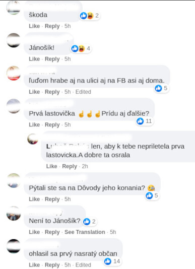 V komentároch v danom príspevku Marosza sú komentujúci na strane útočnika a kritizujú poslancov, do akého stavu doviedli Slovensko a občanov.