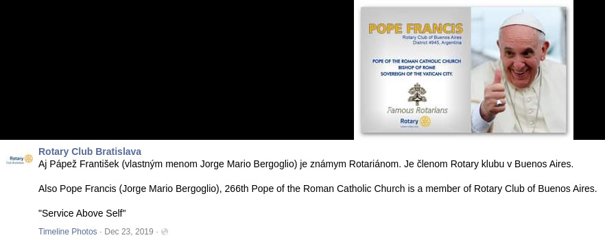 Pre zaujímavosť, čestným členom Rotary clubu je aj pápež František, spájaný so satanizmom.