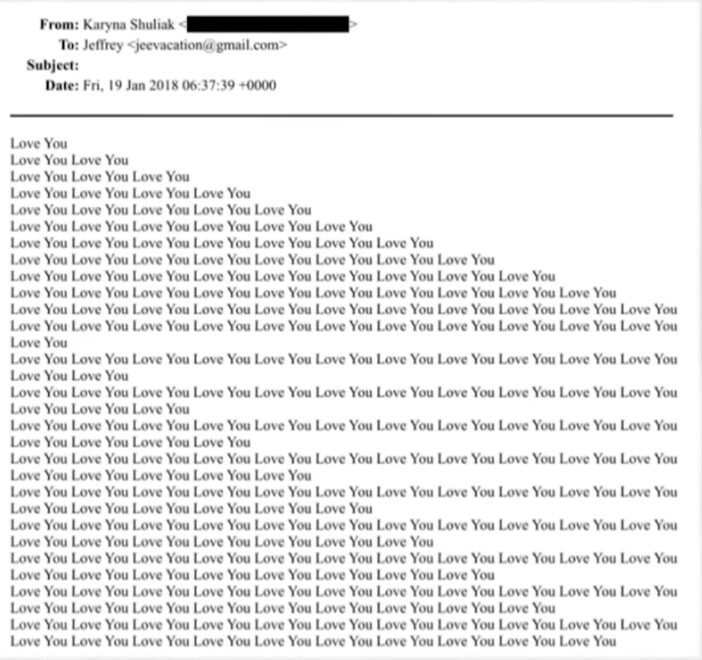 Aj takýto zaľúbený mail poslala Epsteinovi.