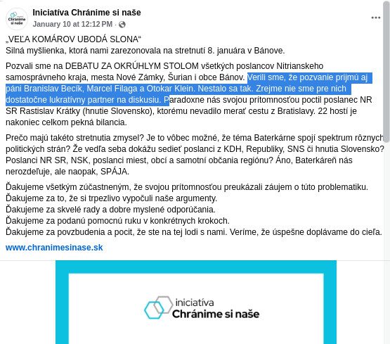 Becíka pozvali na stretnutie bojovníci z ľudu proti čínskej baterkárni v Šuranoch, ignoroval ich.