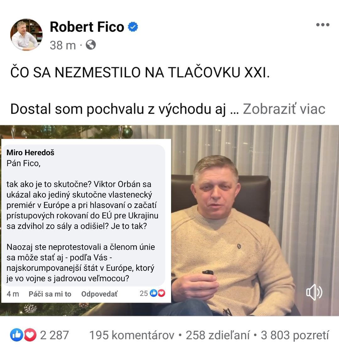 Fico uistil Ukrajinu, že podporuje sankcie voči Rusku
