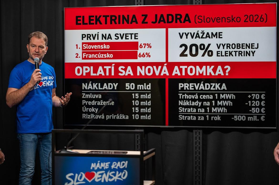 Matovič zároveň odmietol tvrdenia, že by nová jadrová elektráreň bola zisková. „Ak Fico tvrdí, že to bude mašina na peniaze, tak trepe nezmysly. Zdroje v USA, ktoré stavia Westinghouse, vyrábajú jednu megawatthodinu za približne 120 EUR, no na trhu sa predáva za 70 až 80 EUR. To jednoducho nevychádza,“ vysvetlil.