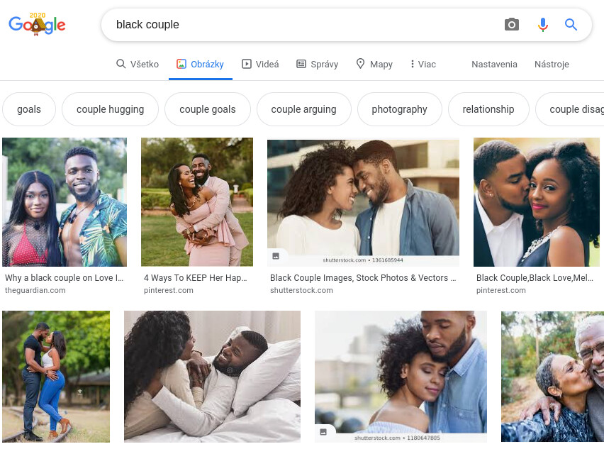 keď dáte black couple (čierný pár), ukáže vám páry zložené vždy z 2 čiernych jedincov…zaujímavé…zakladatelia google, obaja majú židovský pôvod