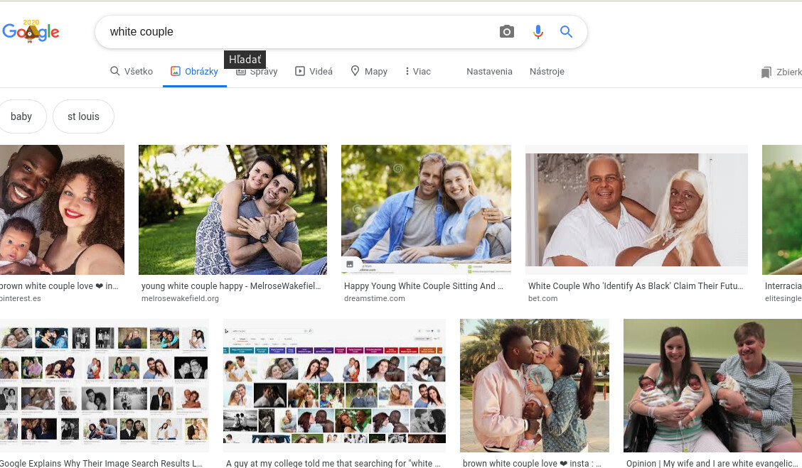Ak dáte do google white couple (biely pár) vyhodí vám páry, kde je jeden jedinec biely a druhý čierny, hispánec, aziat…kde majú adoptované čierne deti…