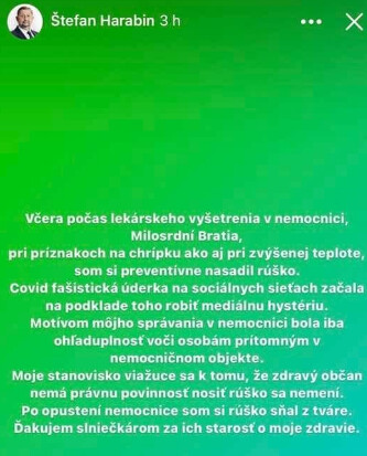 Z druhých sa posmieval, že nosia respirátor. Vyjadroval sa, že ho nikdy nenosí a nebude nosiť….realita je však iná…