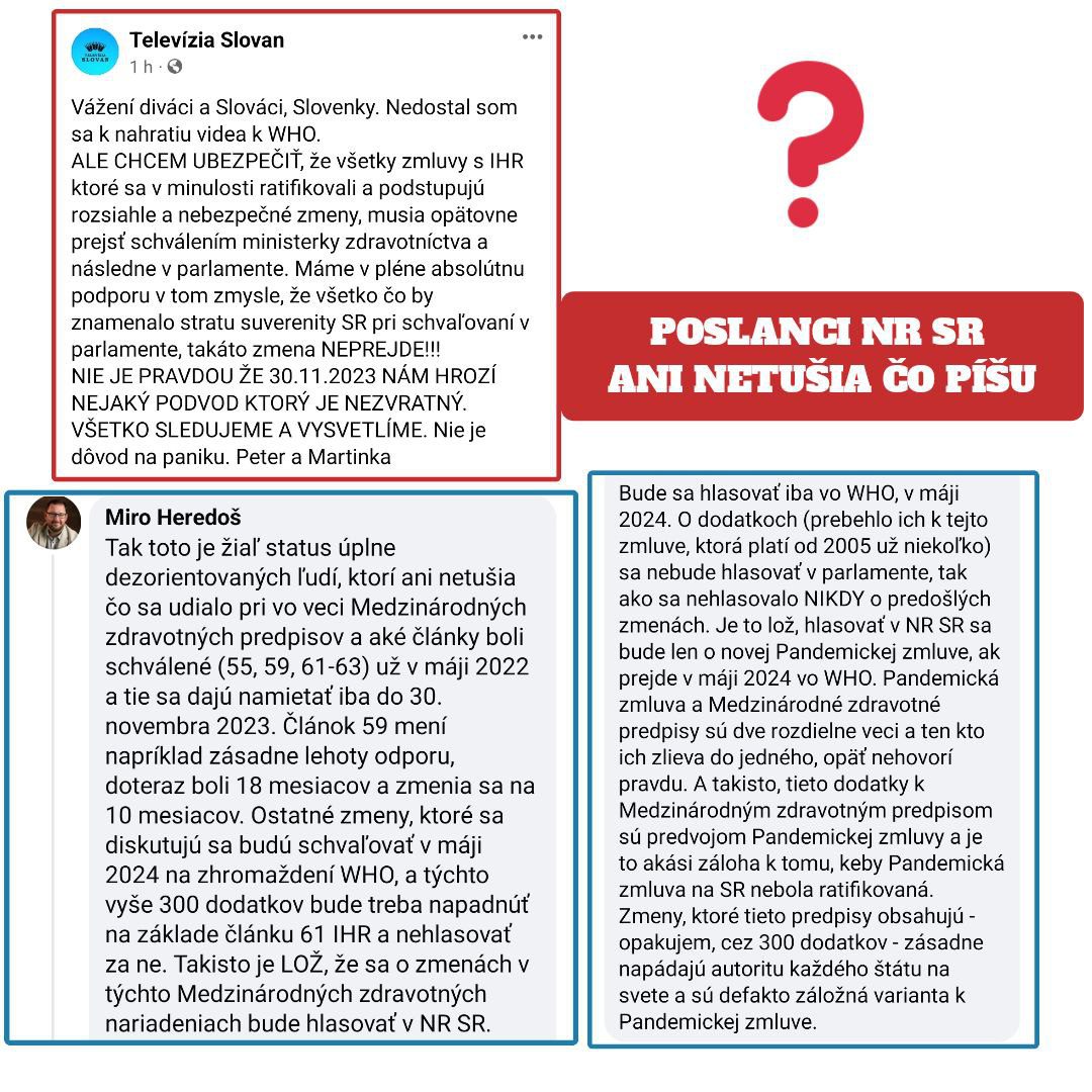Pokračujú normálne v tej Tarabovskej lži, že sa o nič nejedná a „všetko sledujeme“ a hlasovať sa bude v NR SR o zmenách v Medzinárodných zdravotných predpisoch.
