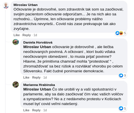 A na tento príspevok reagoval aj Miroslav Urban z Republiky, samozrejme súhlasne. Urban je taktiež podporca očkovania a vládnych nariadení. Paradoxne v strane má na starosti zdravotníctvo. Republika bojuje proti vládnym nariadeniam, aj proti očkovaniu. Schizofrénia v Republike?