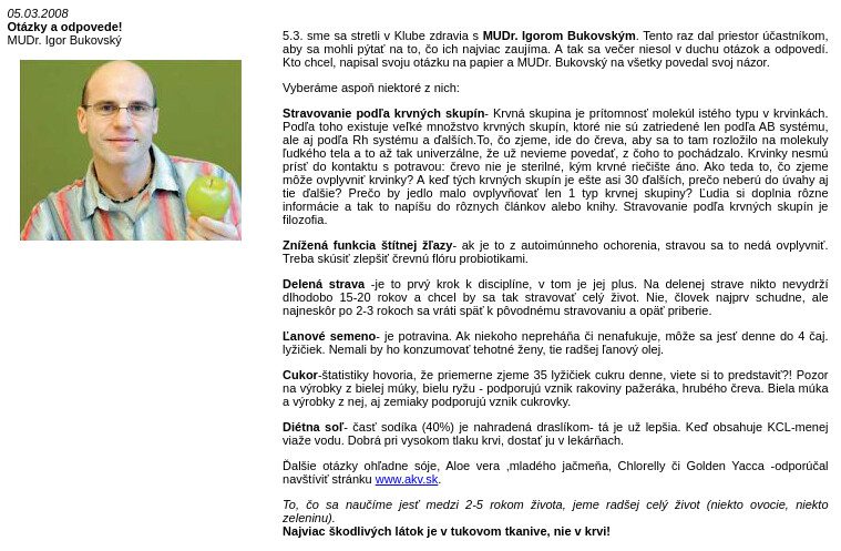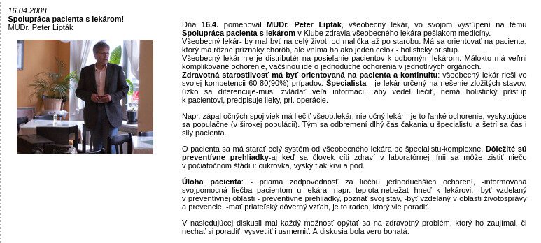 Na stránke cirkvi adventistov nájdeme aj príspevok doktora Liptáka.