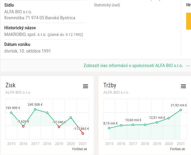 Napriek obrovským narastajúcim ziskom, Lunterova firma Alfabio je v strate.