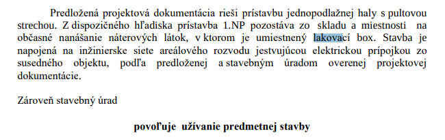 Na internete je spis o jeho čiernej stavbe, ktorú má na učely lakovania…čo tam lakuje je otázne…