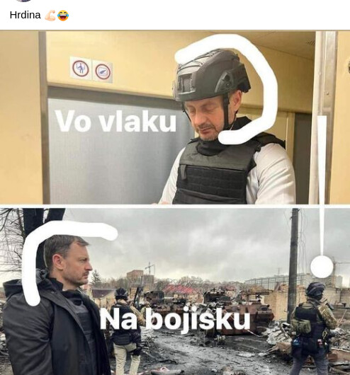Mnohí komentujúci sa posmievajú najmä z toho, že vo vlaku má prilbu. A na bojisku, kde hrozí omnoho väčšie nebezpečenstvo, už nie.