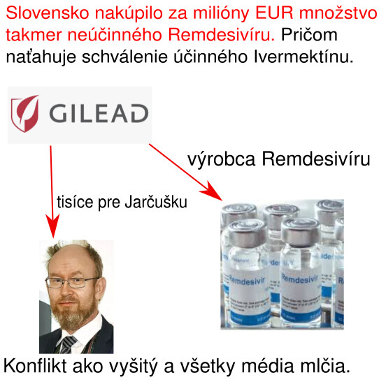 Ešte počas prvej vlny sa z neznámych príčin ľudia ako doktor Jarčuška, člen krizového štábu vyjadrovali, že iná cesta ako vakcína nie je. To bolo nepochopiteľné. Z neznámych dôvodov sa doteraz používal takmer neúčinný a možno aj nebezpečný Remdesivír za vyše 2000 EUR/ 5 dni liečby.