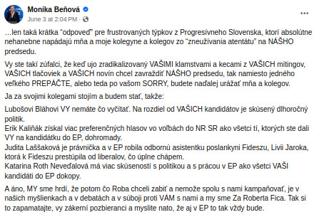 Túto správu začal šíriť na telegrame Miroslav Kamenský v rámci útoku na Daniela Bombiča. Práve Bombič má robiť asistenta Laššákovej v prípade zvolenia (podľa Uhríka).