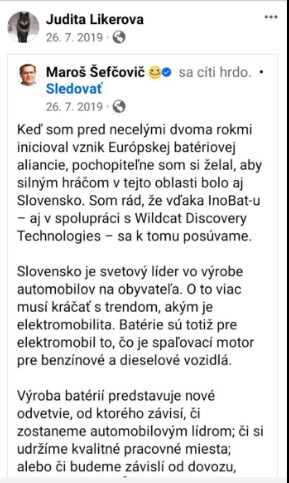 Šefčovič spomína podozrivú firmu InnoBat: