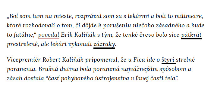 A to podstatné: Nevyjadril sa k tomu žiadný lekár, žiadný chirurg, čo ho operoval. To by bola hrdosť dosiahnúť taký zázrak, prečo sa o tom tak mlčí? Čoho sa tí lekári boja, veď operovať a zachrániť Fica, to musí byť chvála a pýcha. Jedine, že nikto sa nechce priznať ku klamstvám?