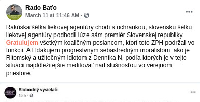 Igor Matovič je v nenávistnej vojne s Radom Baťom (exporadca Kisku a Radičovej). Ten ho na svojom facebooku nazýva len ako ZPH (zbabelé psychopatické hovno). Tak označil Matoviča aj v sms.