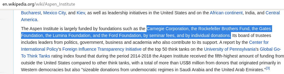 Hlavnými sponzormi Aspen Inštitútu sú Rockefellerovci, Gatesova nadácia.