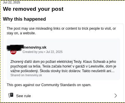 Príspevok o požiari domu spôsobený Teslou, sme uverejnili včera. Do pár minút bol vymazaný. Dnes sme to uverejnili znova, vymazaný do minúty.