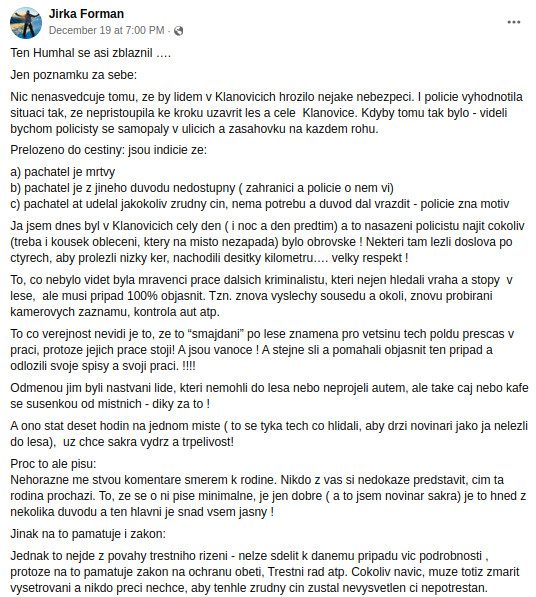 O Formanovi na internete toho veľa nenájdete. Záhadný článok v spojitosti s ministerkou Schillerovou, ktorá išla na miesto v Česku, kde sa vyskytlo tornádo. Záhadne sa tam vyskytol aj tento údajný novinár, ktorého nikto nepoznal, ale mal ako jediný z novinárov prístup k ministerke. Tá neskôr popierala, že ho poznala.