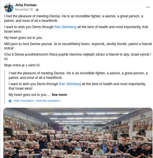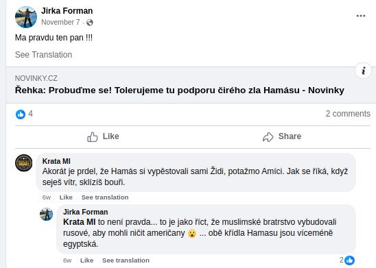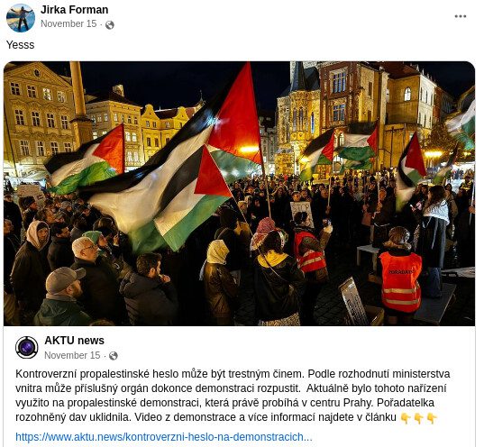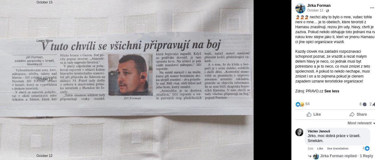 Telegram slúži na informovanie verejnosti o tom, čo sa deje aj v Gaze. O tom ako tam zabíjajú tisíce nevinných detí, ako ich bombardujú. Ako prebieha najväčšia genocída novodobých dejín. Práve tam majú Palestinci možnosť zverejňovať všetko. Jirka je na strane Izraela a tieto správy asi nečíta rád. Aká je náhoda, že masový vrah v Prahe písal po anglicky a na tom Ruskom telegrame, ktorý nie je ešte cenzurovaný. Aká je náhoda, že Rusko podporuje vytvorenie Palestíny, s čím by Jírko Forman nesúhlasil.