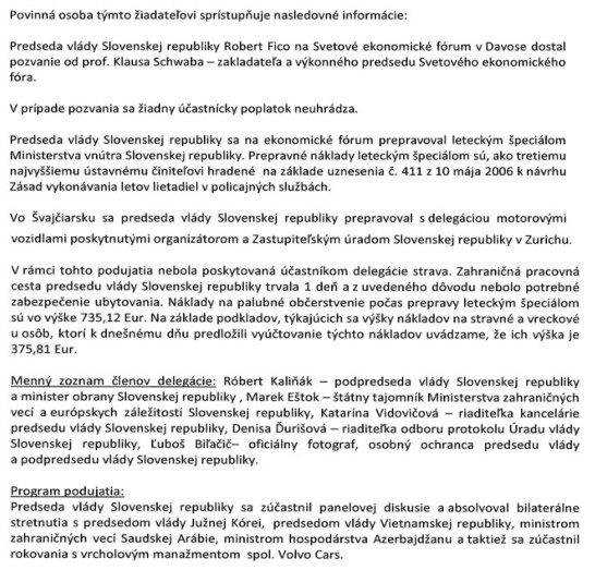 Pýtal som sa cez infozákon, kto s Ficom šiel na zločinecké svetové ekonomické fórum, koľko to stálo a čo sa tam preberalo. Samozrejme povrchná odpoveď, cesta a náklady ostatných neboli zverejnené.