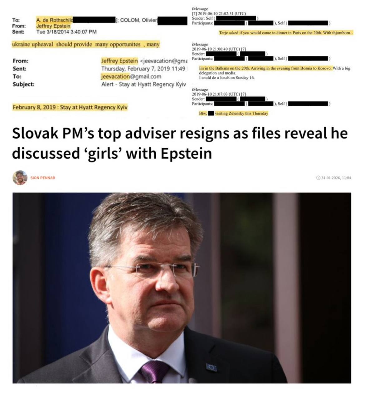Zo spisov Epsteina vyplýva, že Lajčák mu v júni 2019 poslal správu o „návšteve Zelenského tento štvrtok“, niekoľko týždňov po tom, ako Zelenský nastúpil do úradu, a mesiac pred zatknutím Epsteina.