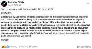 Zdroj: FB/MUDr. Radoslav Čičala, https://www.facebook.com/groups/509968623630307/posts/578352050125297/