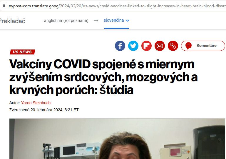 zdroj: NY post: https://nypost.com/2024/02/20/us-news/covid-vaccines-linked-to-slight-increases-in-heart-brain-blood-disorders/