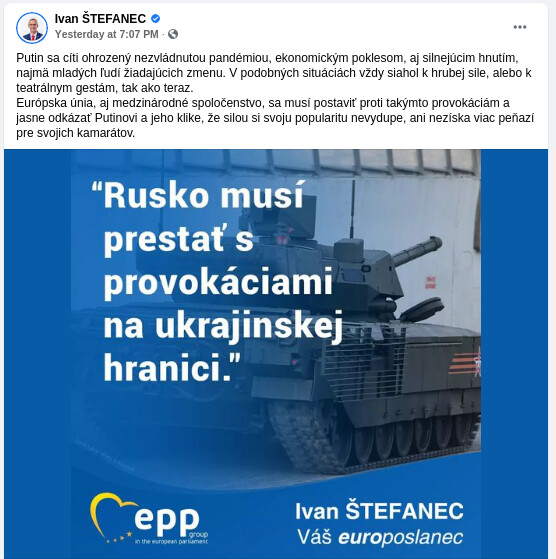 V komentároch schytal Štefanec kritiku. Mnohí mu opakujú, že Rusko robí tie cvičenia na svojom územi, zatiaľ čo západ vyzbrojuje Ukrajinu a provokatívne ju ženie do vojny a provokáci. Len cez Slovensko šlo za posledný rok vyše 100 konvojov NATO.