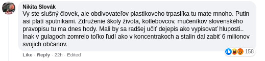 V komentároch sa na obranu Štefanca postavil Nikita Slovák, ten je silne aktívny v ťaženi a posmievani sa zo Slovákov, veď je súčasťou Židovského národa, tak sa môže povyšovať.