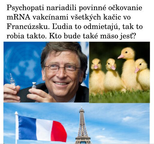 Kačky a hydinu vo veľkochovoch otrávia odpadom, ktorý dávajú týmto zvieratám, plný antibiotík a inej chémie. Zviera je potom otrávené a urobia zázračné testy PCR a hurá, vtáčia chrípka. Zabíjať alebo očkovať. Treba zarobiť, tak očkovať. A aby ste nemuseli zabiť, tak očkovať. Každého vydierajú inak. Ľudi obmedzovali na slobode, len aby ich napichali genetickým sajrajtom. Bolo by načase, aby ľudia zobrali tieto vakcíny a napichali ich vlastnoručne všetkým politikom a propagátorom týchto vakcín, aby neoblbovali ľudí nejakými vitamínmi označenými ako vakcíny. A preto intenzívne pracujú na tom, aby ľuďom zhoršili podmienky chovať si vlastnú hydinu, neočkovanú experimentálnymi vakcínami.