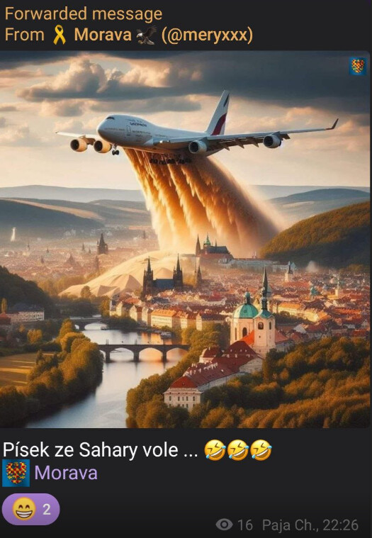 Či to je skutočne saharský prach, alebo vypúšťanie rôzných prvokov lietadlami do atmosféry je otázkou.
