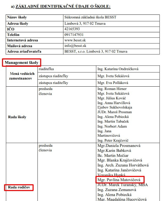 Predsedom predstaventstva Eurolab lambda je aj konateľ súkromnej školy Besst s.r.o, kde chodia Matovičove deti a kde bola v manažmente Matovičova manželka.