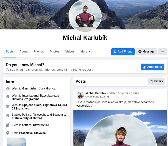 Michal Karlubík, ako inak, študuje v Oxforde – politiku, filozófiu a ekonómiu. Aká náhoda a je otázne, kto mu to platí…či je to odmena za organizáciu Slušných protestov, alebo odmena od Matoviča?