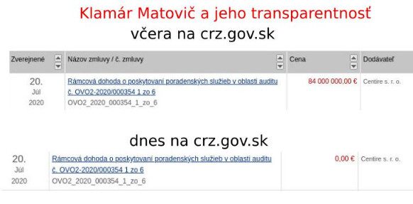 Akonáhle sa to prevalilo, tak Matovič dal vyjadrenie, že to nie je pravda. To medzičasom zmizlo z internetu a poprvýkrát v dejinách Slovenska dodatočne CRZ.GOV.SK upravili a cenu zmenili na 0.