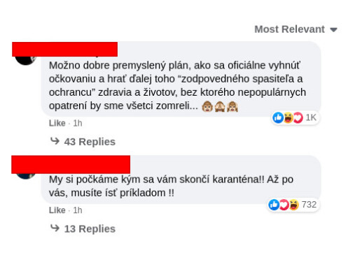 Hneď pod statusom dva komentáre s najväčšim množstvom reakcii poukazujú na to, že to urobili naschvál, aby sa nemuseli dať očkovať ako prví.